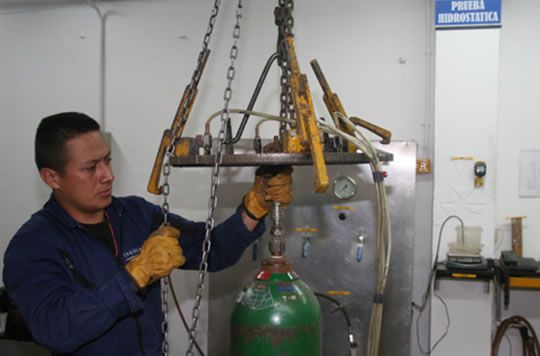 Cuando se puede utilizar con otros gases se envía a nuestro laboratorio de pruebas hidrostáticas, donde se realiza la prueba y si es declarado apto para el servicio requerido, se procede a su alistamiento definitivo y su posterior llenado
