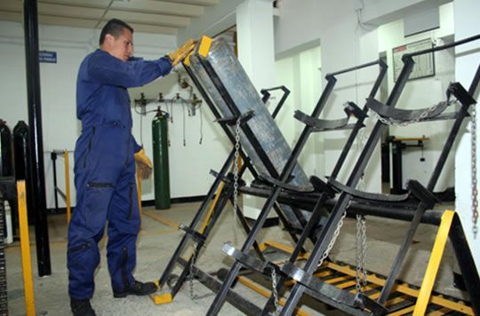 Disponemos de un sitio con equipos y procedimientos para la evacuación de cilindros, conteniendo gases tóxicos, corrosivos, combustibles y para la disposición de los residuos generados por la evacuación. Después de ser evacuados y lavados los cilindros se procede a una inspección externa e interna minuciosa, para calificar su estado y decidir si se destruye o se habilita para utilizarlo con otros gases.