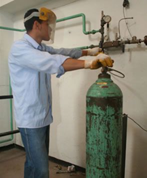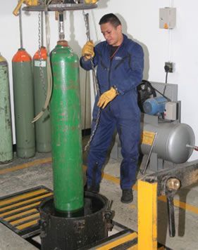 Disponemos de un sitio con equipos y procedimientos para la evacuación de cilindros, conteniendo gases tóxicos, corrosivos, combustibles y para la disposición de los residuos generados por la evacuación. Después de ser evacuados y lavados los cilindros se procede a una inspección externa e interna minuciosa, para calificar su estado y decidir si se destruye o se habilita para utilizarlo con otros gases.