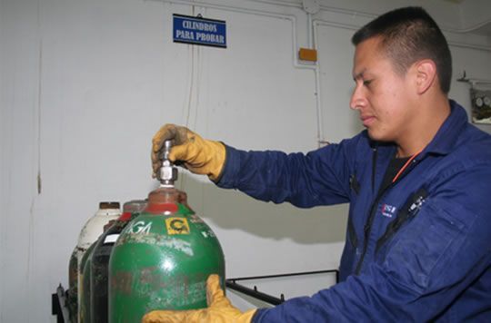 Cuando se puede utilizar con otros gases se envía a nuestro laboratorio de pruebas hidrostáticas, donde se realiza la prueba y si es declarado apto para el servicio requerido, se procede a su alistamiento definitivo y su posterior llenado